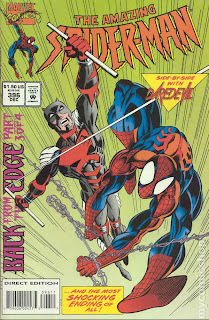 Daredevil and Spidey battle the Owl and Vulture in "Deadmen." Script by J.M. DeMatteis, pencils by Mark Bagley, inks by Larry Mahlstedt.