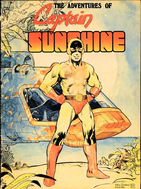 Captain Sunshine is a solar powered superhero with the ability to fly and produce powerful bursts of solar light that can blind and sunburn opponents. His secret identity is Chuck Scarsdale, a wealthy television news anchor on the Action 5 News Team. Scarsdale started out as the original Captain Sunshine's sidekick Wonder Boy. The original Captain now serves as the current Captain's butler Desmond. He seemingly took out the evil-doer Crime-o-dile by setting his crock-pit on fire, leaving the villain's henchmen, including Charlie (who wears name tags referring to himself as "Herman" ) out of a job. One incarnation of Sunshine's sidekick Wonder Boy was apparently charred to death by The Monarch. His remains were sent to his mentor sometime during The Monarch's stint in jail and before the events of Return to Spider-Skull Island. A giant penny with the Monarch's face can be seen in Captain Sunshine's lair, and 21 mentions seeing "a giant penny roll over a guy dressed like a rainbow" in Assisted Suicide, suggesting this penny was once used by The Monarch to attack Captain Sunshine. As a result of an encounter early in The Monarch's career, in which the Captain accidentally left a ray gun's safety on, Sunshine still believes The Monarch is invulnerable. The Monarch recounted this story at Phantom Limb's party where he first seduced Dr. Girlfriend. Captain Sunshine returned to have his revenge on The Monarch in Handsome Ransom. The Monarch (aided greatly by his wife) created a machine that would mimic his solar bursts. The monarch intended to take advantage of his nocturnal lack of powers and burn the captain with his own power, but he inadvertently charged up Sunshine's body giving him the power to defeat the Monarch and the Fluttering Horde. People, while grateful for the good he does, are wary about letting him near children. Partly because of the inappropriately creepy relationship he has with Wonderboy, but also for his habit of either rejecting his sidekicks when they get too old, leaving them messed up psychologically, or getting them killed.