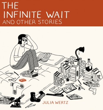 In a sense, the heart of each of the three short stories in Julia Wertz’s memoir The Infinite Wait is the impact that discovering comics has had on her life. Ostensibly, the book is broken up into “Industry”, a chronological account of her life as seen through her job history; “The Infinite Wait”, her account of learning that she suffered from chronic systemic lupus; and “A Strange and Curious Place”, a love letter to the first public library she haunted as a child. While each story can be read as discrete narratives, the truth is that this book is a sort of recapitulation and revisitation of the themes and events she explored in her first three books (The Fart Party Volumes 1 & 2; Drinking At The Movies). There’s a deeper level of narrative, thematic and emotional complexity that becomes more apparent as one reads the book for a second time. Wertz doesn’t exactly disown her earlier works in this book, but she goes into detail as to why each of them make her uncomfortable from her current perspective.