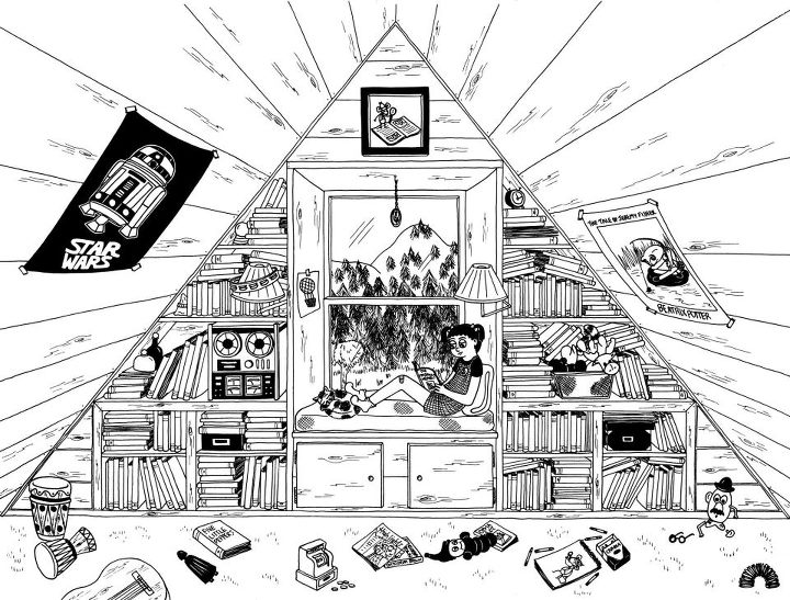 In “A Strange and Curious Place”, young Julia makes a fort in the living room and declares, upon poking her head out after her mother inquires after her, “There’s nothing for me out here.” She was happy to be in there with her books. Wertz goes into detail about an almost fetishistic love of books, down to the smell and feel of paper. Part of this is fueled by Wertz’s lifelong distaste for being a joiner; she wasn’t continually misanthropic, of course, but she never faked it to fill in. Once again, comics had a huge impact on her life, as she met dozens of cartoonists during a cross-country trip who wound up becoming life-long friends. In her comics, Wertz portrays the way she expresses her emotions as something mediated through various filters, like jokes with her brother. Comics became a filter with which she could develop close friendships built around a common passion, especially considering how bookish and introverted many cartoonists tend to be. Each of the three chapters ends with Wertz eventually expanding her range of relationships during different periods of her life, but there’s no question that she depicts herself as going from closed off to more open to opportunities in each story.